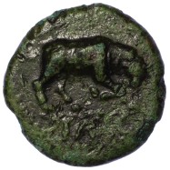 Bull butting right, TASC in exergue.