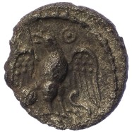 Eagle standing on snake, looking l. Ringed pellet above.