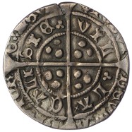Lightly clipped and a minor striking split otherwise good fine, toned and rare. In addition to its rarity, this issue is numismatically important, being the last groats produced at the Calais mint. This reverse legend, although similar to Whitton 35a and 35b, was unknown to him, having a single saltire stop after LA and possibly double saltire stops after DEVM.