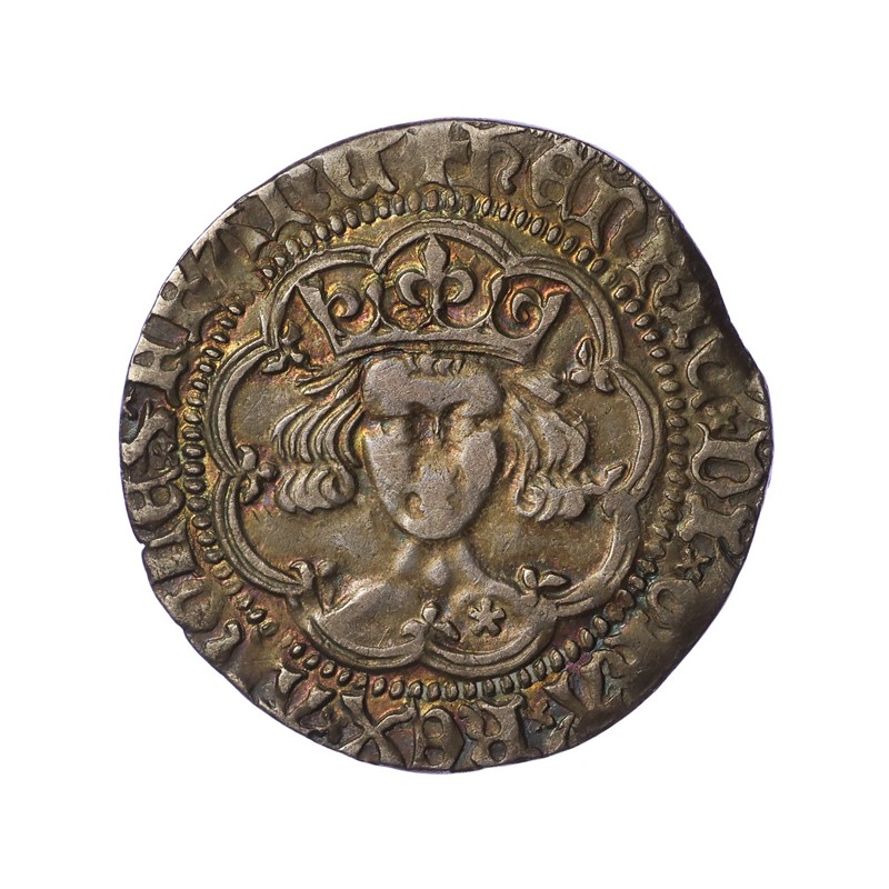HENRIC DI GRA REX ANGLIE Z FRANC. Frowning facing bust, mullet on right shoulder.