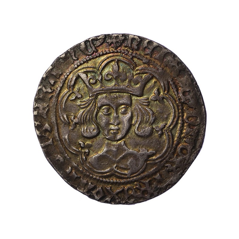 HENRIC DI GRA REX ANGL FRANC. Crowned facing bust in tressure of arches.