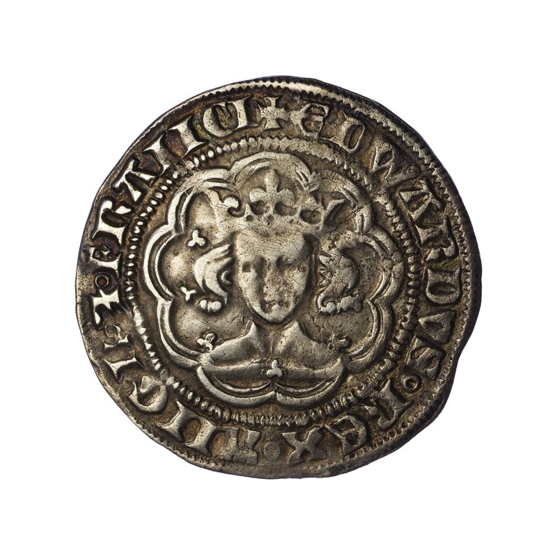 EDWARDVS REX ANGL Z FRAIICI. Crowned facing bust in tressure of nine arches.