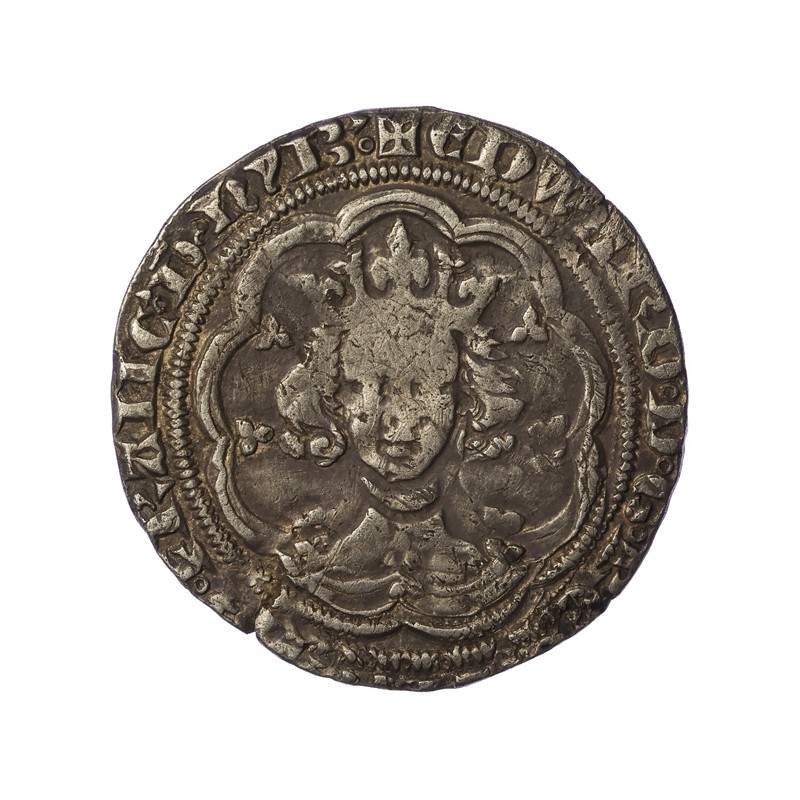 EDWARD D G REX ANGL Z FRANC D HYB. Facing bust in tressure of nine arches.