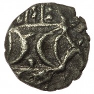 Horse r. with corn-ear mane, pelletal sun above, pellet triad and sloping pellet line ATD monogram below.