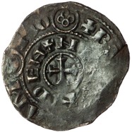 HEN[RI]. Crowned and diademed bust facing left and holding a sceptre, two quatrefoils of annulets in field..