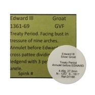 EDWARD DEI GRA REX ANGL DNS HYB Z AQT. Facing bust in tressure of nine arches. Annulet before EDWARD.