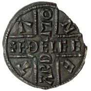 EÐELGE / ARD MO / N / E / T / A. Large beaded longcross with legend around.