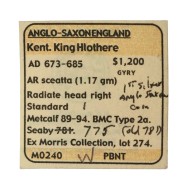 Good very fine, dark tone. Very rare in this grade. Likely struck between 673-685 under King Hlothere of Kent.