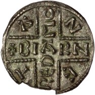 BIARN / RED / MO / N / E / T / A. Large beaded longcross with legend around.