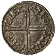 LEOFSIGE MO GLEA. Voided longcross terminating in three crescents, pellet to centre.
