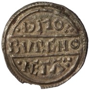ĐMO BVRGNO NETA in three lines, pellets stops, unbroken lunettes above and below.