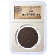 Slabbed and conservatively graded NGC VF30, in the special Newman label.