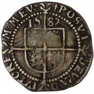 ELIZABETH D G ANG FR ET HI REGINA. Crowned bust with rose behind.