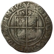ELIZAB D G ANG FR ET HIB REGI. Crowned bust 6C l. with rose behind.