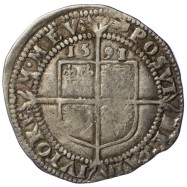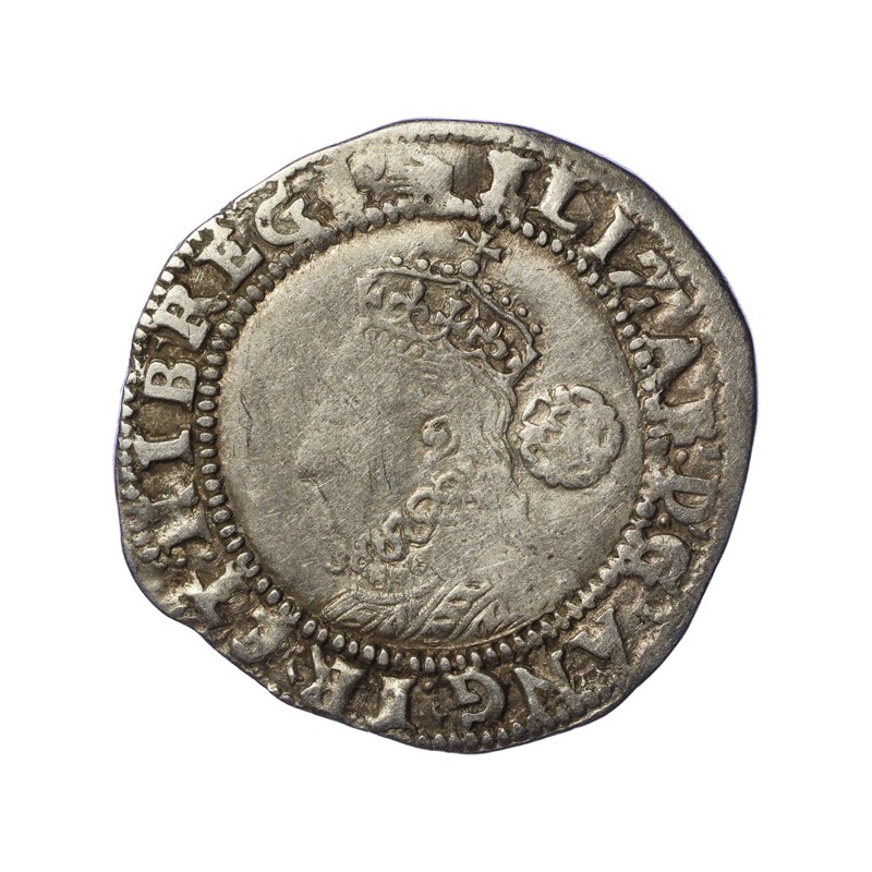 ELIZAB D G ANG FR ET HIB REGI. Crowned bust 6C l. with rose behind.