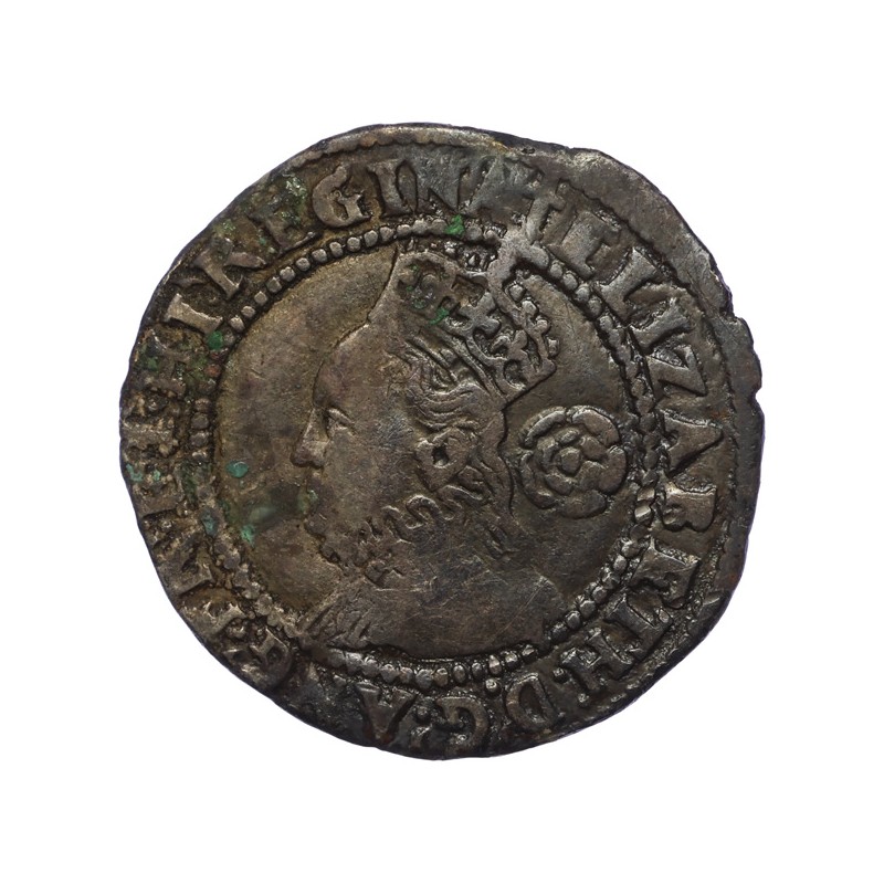 ELIZABETH D G ANG FR ET HI REGINA. Crowned bust with rose behind.