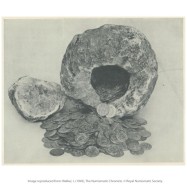 The Tetney hoard was discovered in May 1945 at Tetney in Lincolnshire, approximately 10 miles south of Grimsby, by Morris Walter Houlde. The hoard comprised 420 silver pennies, the majority of which were of Edgar, with 292 examples, alongside 72 of Eadwig, 45 of Eadred, and a small number of exceptions. The coins had been deposited in a chalk container with a detachable lid, which had been broken in two by a plough during cultivation. It likely had a deposition date of the mid-10th century.