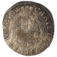 CHRISTO AVSPICE REGNO. Oval garnished shield, plume above.
