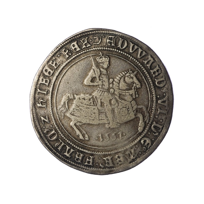 EDWARD VI D G AGL FRA Z HIBER REX. King on horseback with date, 1551 below.