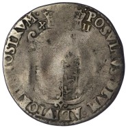 POSVIMVS DEVM ADIVTOR[EM N]OSTRVM. Oval garnished shield with arms of Spain and England, crown dividing value mark XII above.