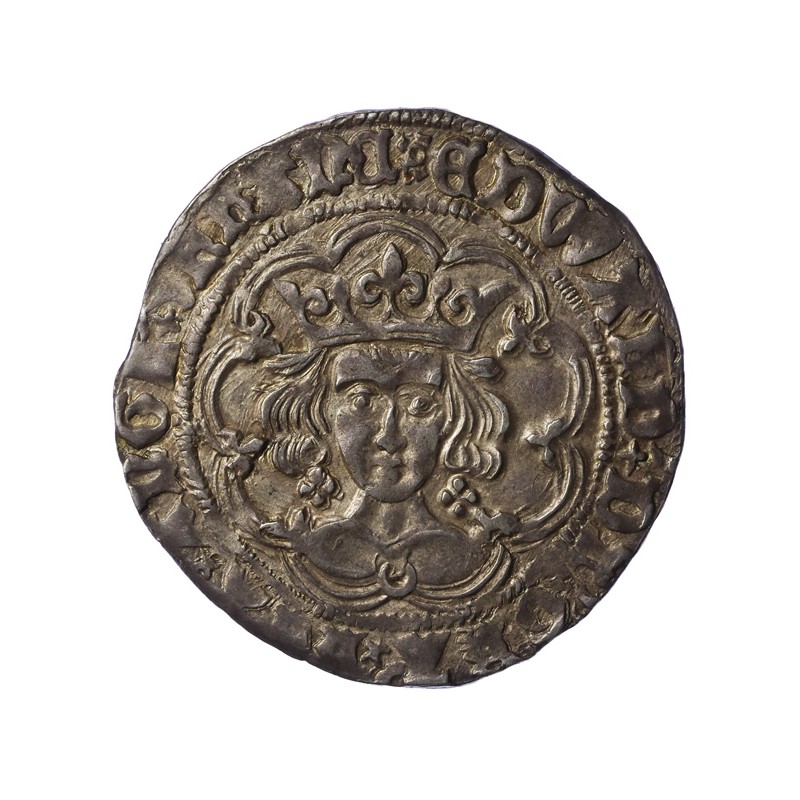 EDWARD DI GRA REX ANGL Z FRANC. Facing crowned bust in tressure of arches, quatrefoils by neck, crescent on breast.