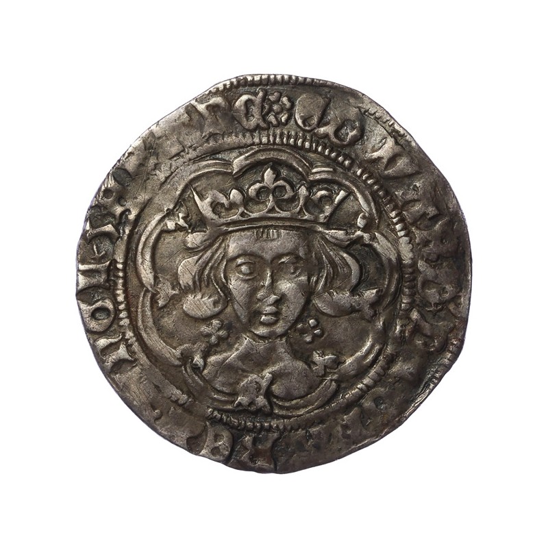 EDWARD DI GRA REX ANGL Z FRANC. Facing crowned bust in tressure of arches, quatrefoils at neck. E on breast overstruck with a fleur.