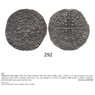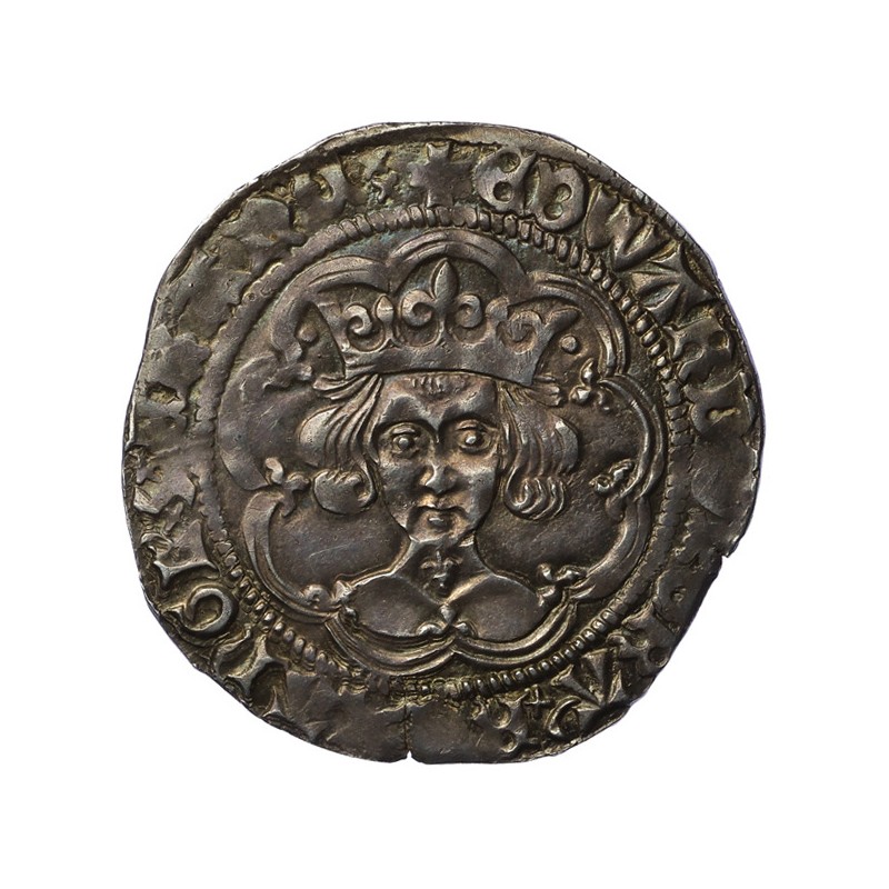 EDWARD DI GRA REX ANGL Z FRANC. Facing crowned bust in tressure of arches, Lis on neck and pellets by crown.